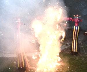 रावण की आंखों से सुलगी आग देखते ही पटाखों और आतिशबाजियों के धमाकों के साथ जलने लगा। इसके साथ ही मुख्यमंत्री ने मंदिर परिसर में बनाए विशालकाय रावण, कुभकर्ण, मेघनाथ के पुतलों को भी बारी बारी से रिमोट दबाकर आग लगाई। आग लगते ही पूरा परिसर मौजूद हजारों की भीड़ में जय श्री राम....,जय हनुमान के नारे करीब बीस मिनट तक गुंजते रहे।