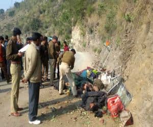 पुलिस से मिली जानकारी के अनुसार रविवार दोपहर करीब 1.15 बजे मटेला बैंड के पास जीप (यूके 04 टीए 4135) एक बैंड से पलटकर दूसरे बैंड की मुख्य सड़क से होते हुए करीब 400 मीटर खाई में गिर गई।