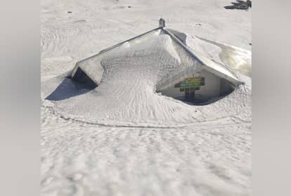 हेमकुंड साहिब में जमे 20 फीट तक ऊंचे हिमखंड, बर्फ से गुरुद्वारा भी ढका, सामने आई साल की पहली तस्वीरें...
