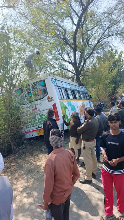 Mathura News: छटीकरा-राधाकुंड मार्ग पर पेड़ से टकराई बस