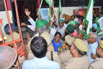 शाहजहांपुर में ट्रेन रोकने जाते भारतीय किसान यूनियन के कार्यकर्ताओं को गिरफ्त कर बस में बैठाती ?
