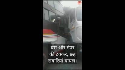 VIDEO : फर्रुखाबाद में बस और डंपर की जोरदार भिड़ंत, छह यात्री घायल...चालक बाल-बाल बचा, 45 मिनट तक लगा जाम