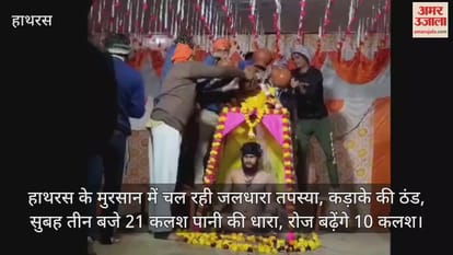हाथरस के मुरसान में चल रही जलधारा तपस्या, कड़ाके की ठंड, सुबह तीन बजे 21 कलश पानी की धारा, रोज बढ़ेंगे 10 कलश